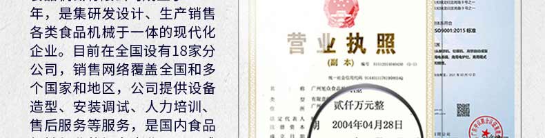 廣州旭眾食品機(jī)械有限公司是一家集科研開發(fā),生產(chǎn)設(shè)計(jì),營(yíng)銷服務(wù)為一體的現(xiàn)代化生產(chǎn)企業(yè)。現(xiàn)代化生產(chǎn)車間,精湛制造技術(shù),所產(chǎn)機(jī)械歷經(jīng)市場(chǎng)重重考驗(yàn),不斷贏得海內(nèi)外客戶的贊譽(yù)。