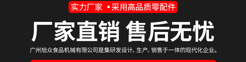 廣州旭眾食品機(jī)械有限公司是一家集科研開發(fā),生產(chǎn)設(shè)計(jì),營(yíng)銷服務(wù)為一體的現(xiàn)代化生產(chǎn)企業(yè)。現(xiàn)代化生產(chǎn)車間,精湛制造技術(shù),所產(chǎn)機(jī)械歷經(jīng)市場(chǎng)重重考驗(yàn),不斷贏得海內(nèi)外客戶的贊譽(yù)。