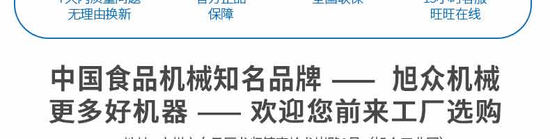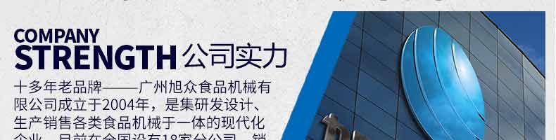廣州旭眾食品機(jī)械有限公司是一家集科研開發(fā),生產(chǎn)設(shè)計,營銷服務(wù)為一體的現(xiàn)代化生產(chǎn)企業(yè)。現(xiàn)代化生產(chǎn)車間,精湛制造技術(shù),所產(chǎn)機(jī)械歷經(jīng)市場重重考驗,不斷贏得海內(nèi)外客戶的贊譽(yù)。