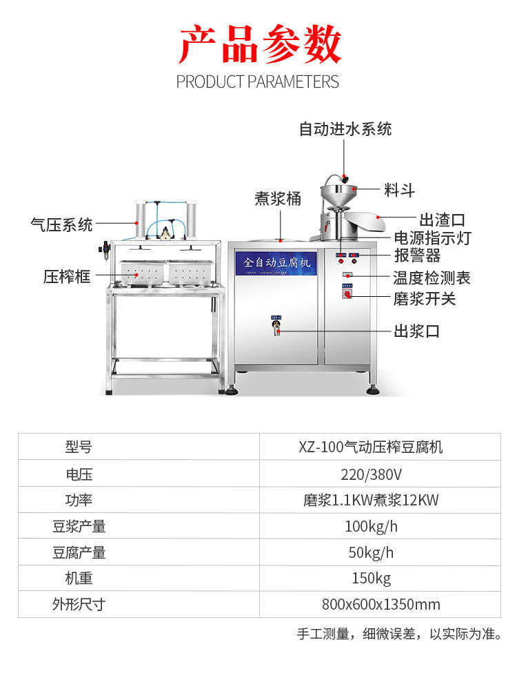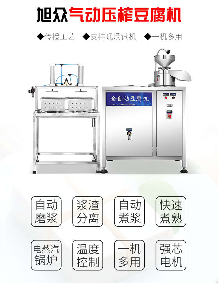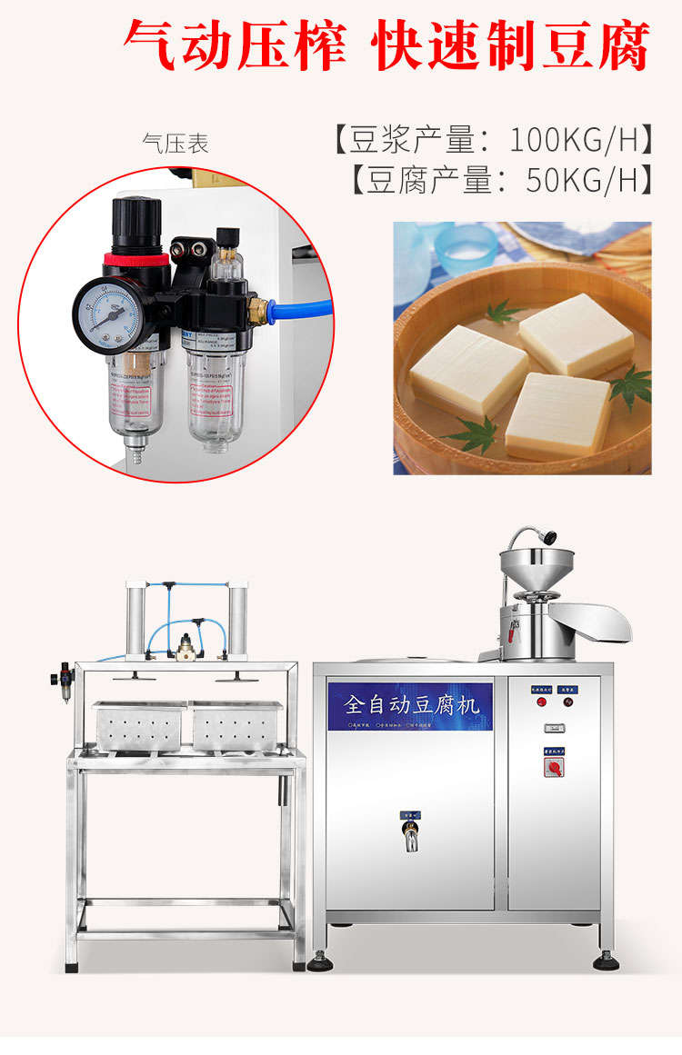 XZ-100型全自動豆腐機,商用全自動氣動壓榨豆腐機氣動壓榨,分離漿水,不傷豆腐,定型美觀。