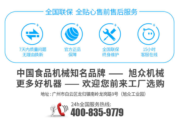 廣州旭眾食品機械有限公司是一家集科研開發(fā),生產(chǎn)設計,營銷服務為一體的現(xiàn)代化生產(chǎn)企業(yè)?,F(xiàn)代化生產(chǎn)車間,精湛制造技術,所產(chǎn)機械歷經(jīng)市場重重考驗,不斷贏得海內外客戶的贊譽。