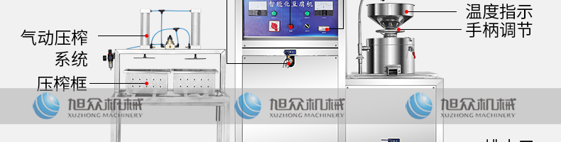 XZ-200 智能化豆腐機,蒸汽煮熟、長久保鮮。通過水蒸氣高溫加熱煮熟,保持原有光澤與鮮美。人性化設計操作簡單,多項監(jiān)測機械的安全性。