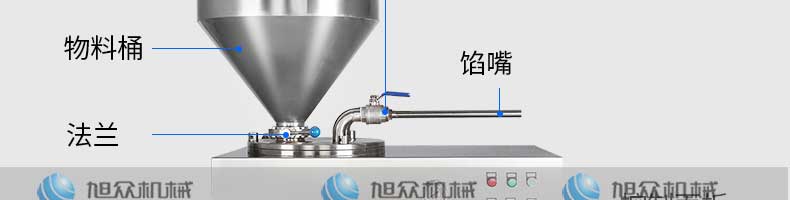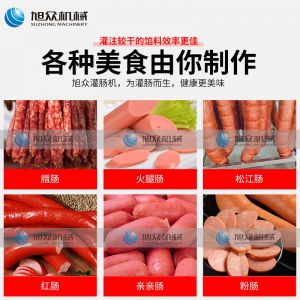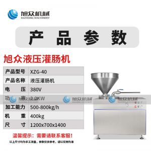 XZG-40液壓灌腸機,液壓灌腸機,可升降灌腸餡管,液壓氣動式灌腸。灌注較干的餡料效率更佳,各種美食由你制作。旭眾灌腸機,為灌腸而生,健康更美味。