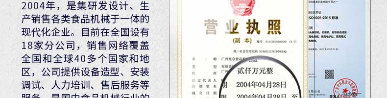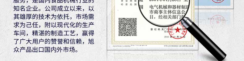 廣州旭眾食品機械有限公司是一家集科研開發(fā),生產(chǎn)設(shè)計,營銷服務(wù)為一體的現(xiàn)代化生產(chǎn)企業(yè)。現(xiàn)代化生產(chǎn)車間,精湛制造技術(shù),所產(chǎn)機械歷經(jīng)市場重重考驗,不斷贏得海內(nèi)外客戶的贊譽。
