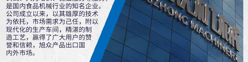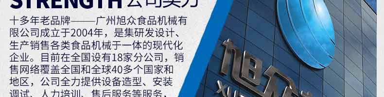 廣州旭眾食品機(jī)械有限公司是一家集科研開發(fā),生產(chǎn)設(shè)計(jì),營(yíng)銷服務(wù)為一體的現(xiàn)代化生產(chǎn)企業(yè)。現(xiàn)代化生產(chǎn)車間,精湛制造技術(shù),所產(chǎn)機(jī)械歷經(jīng)市場(chǎng)重重考驗(yàn),不斷贏得海內(nèi)外客戶的贊譽(yù)。
