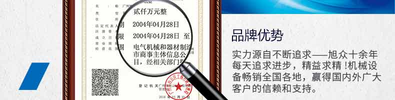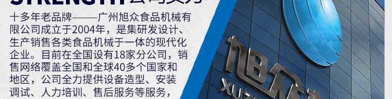 廣州旭眾食品機(jī)械有限公司是一家集科研開(kāi)發(fā),生產(chǎn)設(shè)計(jì),營(yíng)銷服務(wù)為一體的現(xiàn)代化生產(chǎn)企業(yè)?,F(xiàn)代化生產(chǎn)車間,精湛制造技術(shù),所產(chǎn)機(jī)械歷經(jīng)市場(chǎng)重重考驗(yàn),不斷贏得海內(nèi)外客戶的贊譽(yù)。
