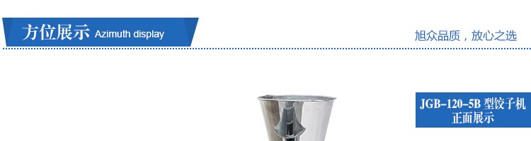 JGB-120-5B型餃子機(jī),本機(jī)是一款可生產(chǎn)各種肉餡、肉菜混合餡、全菜餡及其他種餡餃子的設(shè)備。一機(jī)多用途,只要更換模具,就可制作不同的食品,如春卷、餛飩、咖喱角、鍋貼等。適用于賓館、飯店、餐廳、團(tuán)體食堂加工,幼兒園、速凍餃子生產(chǎn)。