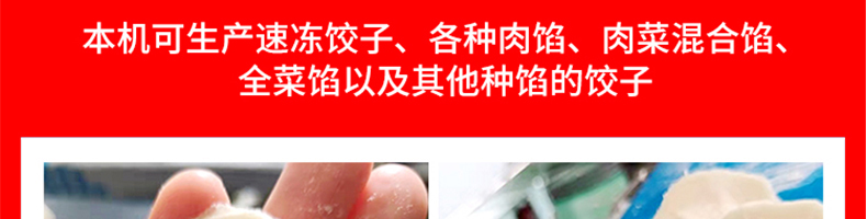 210豪華餃子機(jī),實力強(qiáng)勁、超高效率一小時可做大約20000個餃子!可生產(chǎn)速凍餃子、各種肉餡、肉菜混合餡、全菜餡以及其他種餡的餃子。
