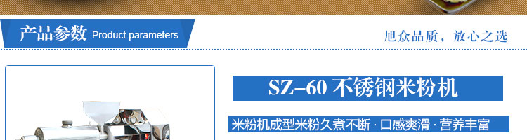 SZ-60不銹鋼米粉機(jī),可生產(chǎn)米粉、米線、桂林米粉、過橋米線、年糕、糍粑等產(chǎn)品。各種形狀都可生產(chǎn)(圓、扁),加工食品外表光滑,厚薄、寬窄、粗細(xì)均勻可調(diào),筋軟適度,有彈性,口感柔軟、味道純正。