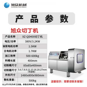 XZ-QD400切丁機,替您排憂解難全自動商用切丁機切片、切絲、切丁,功能強大,滿足您的使用需求。多功能&實用人即可操作,切出自己想要的規(guī)格,滿足商用多種需求。