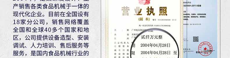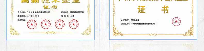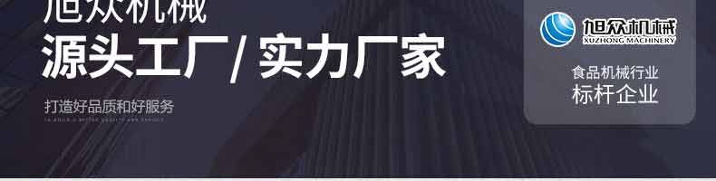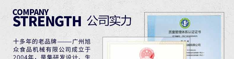廣州旭眾食品機械有限公司是一家集科研開發(fā),生產(chǎn)設(shè)計,營銷服務(wù)為一體的現(xiàn)代化生產(chǎn)企業(yè)。現(xiàn)代化生產(chǎn)車間,精湛制造技術(shù),所產(chǎn)機械歷經(jīng)市場重重考驗,不斷贏得海內(nèi)外客戶的贊譽。