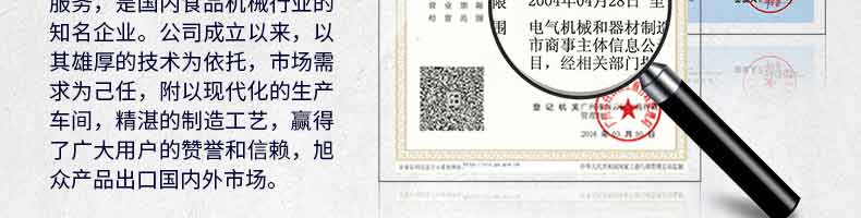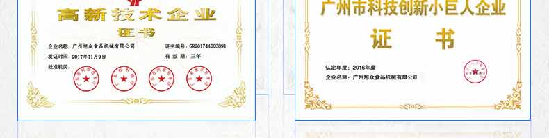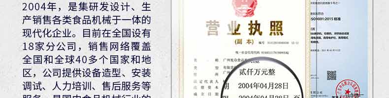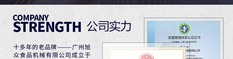 廣州旭眾食品機(jī)械有限公司是一家集科研開(kāi)發(fā),生產(chǎn)設(shè)計(jì),營(yíng)銷(xiāo)服務(wù)為一體的現(xiàn)代化生產(chǎn)企業(yè)。現(xiàn)代化生產(chǎn)車(chē)間,精湛制造技術(shù),所產(chǎn)機(jī)械歷經(jīng)市場(chǎng)重重考驗(yàn),不斷贏得海內(nèi)外客戶(hù)的贊譽(yù)。
