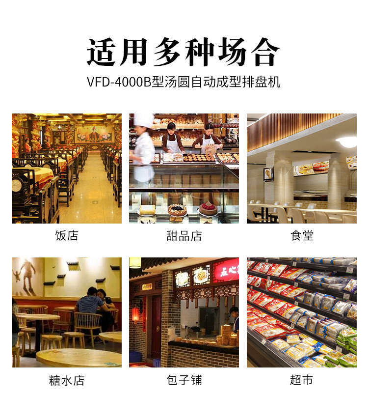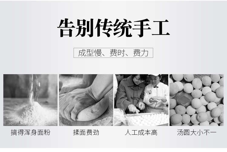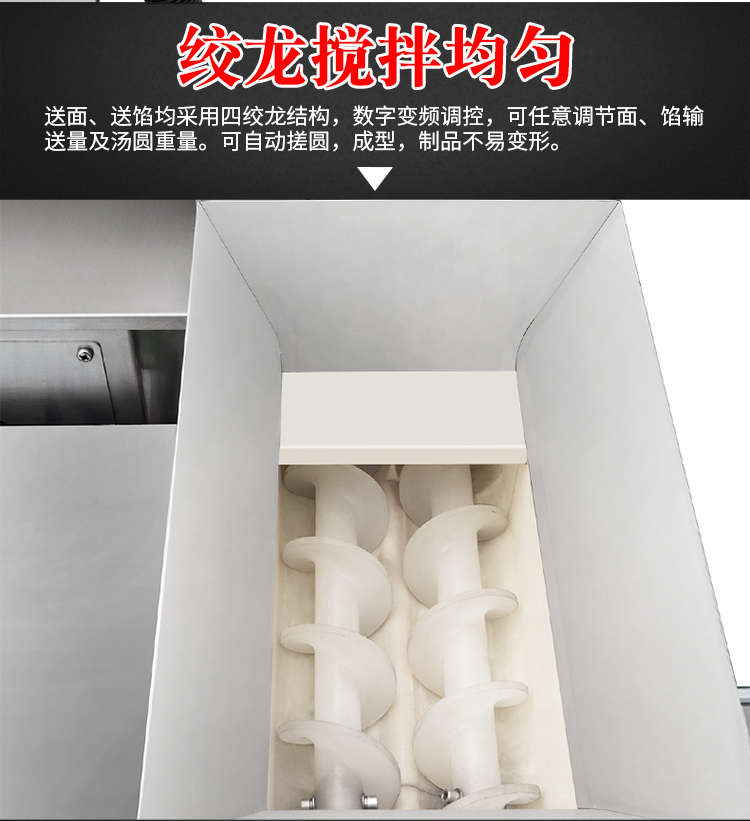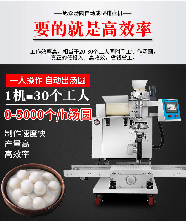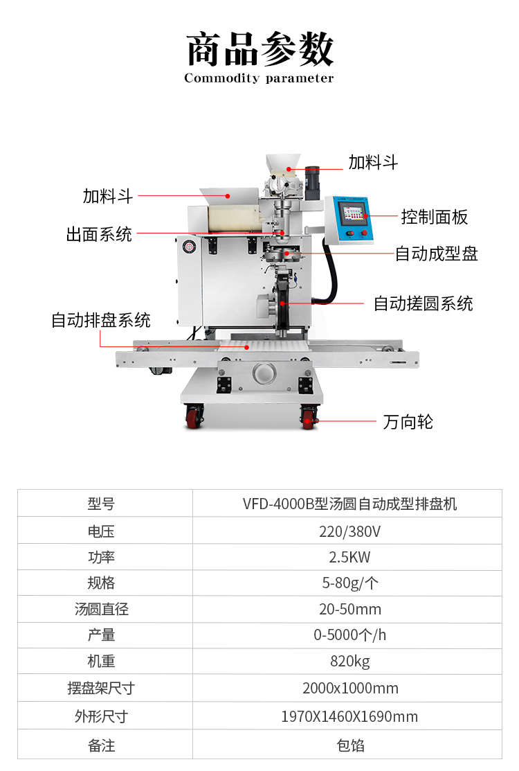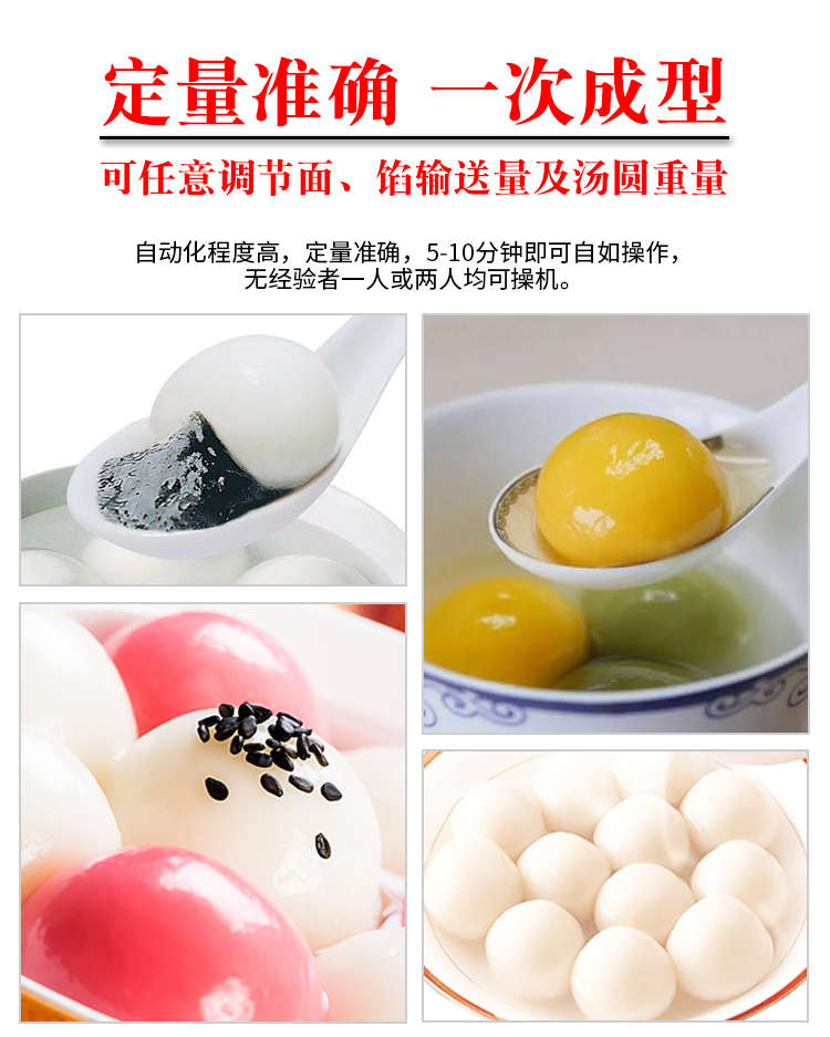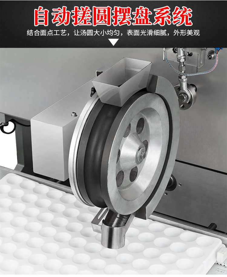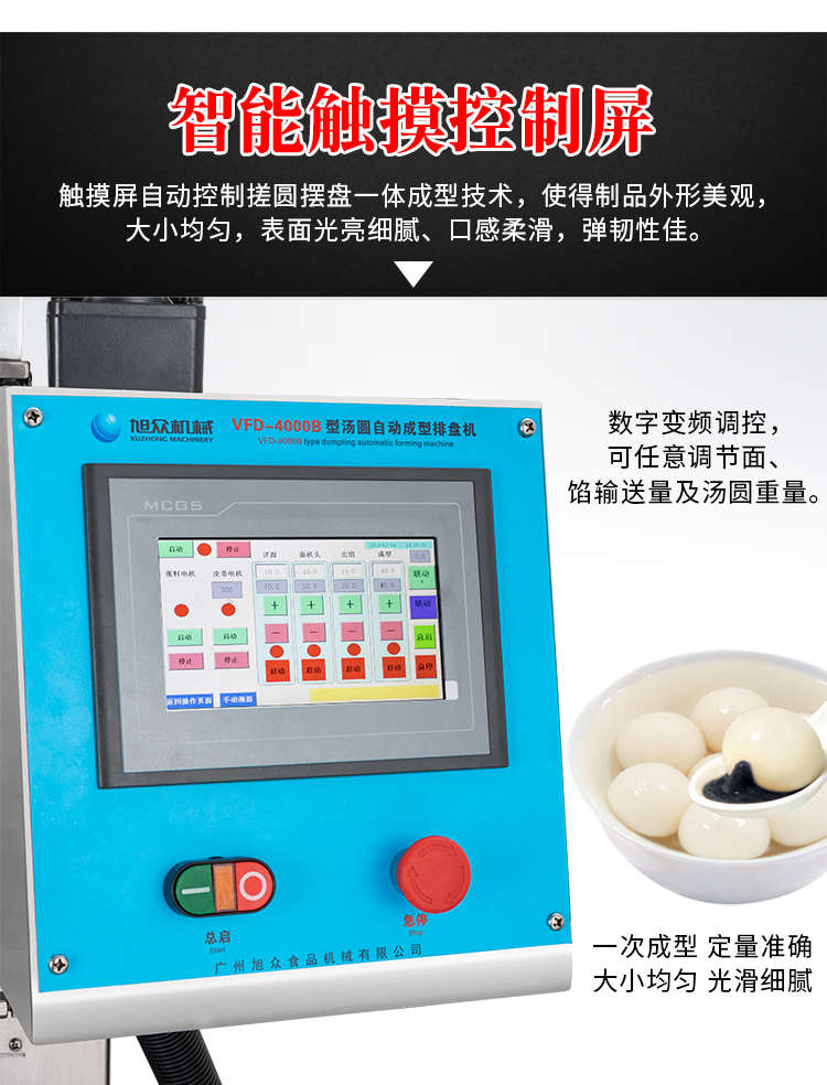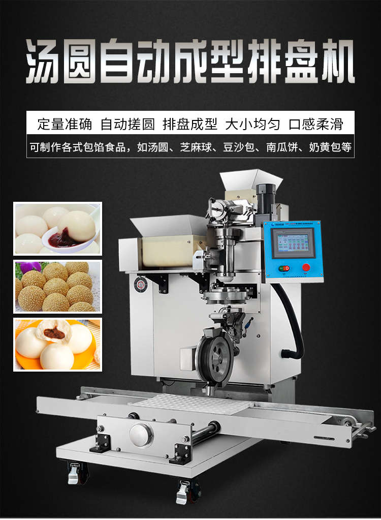 VFD-4000B湯圓機,定量準確自動搓圓排盤成型大小均勻口感柔滑。可制作各式包餡食品,如湯圓、芝麻球、豆沙包、南瓜餅、奶黃包等