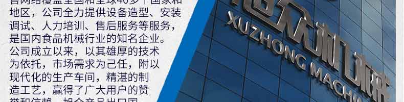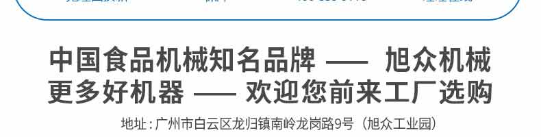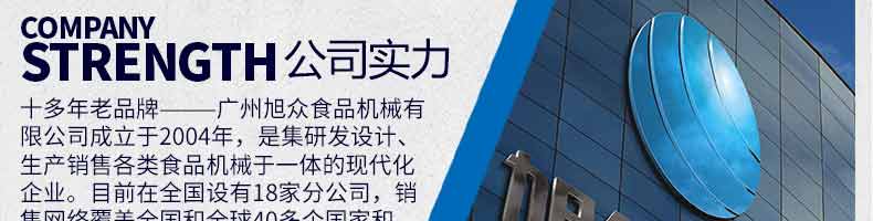 廣州旭眾食品機(jī)械有限公司是一家集科研開發(fā),生產(chǎn)設(shè)計,營銷服務(wù)為一體的現(xiàn)代化生產(chǎn)企業(yè)?,F(xiàn)代化生產(chǎn)車間,精湛制造技術(shù),所產(chǎn)機(jī)械歷經(jīng)市場重重考驗,不斷贏得海內(nèi)外客戶的贊譽(yù)。