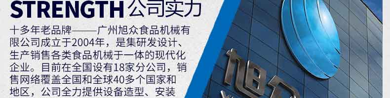 廣州旭眾食品機(jī)械有限公司是一家集科研開發(fā),生產(chǎn)設(shè)計(jì),營銷服務(wù)為一體的現(xiàn)代化生產(chǎn)企業(yè)?,F(xiàn)代化生產(chǎn)車間,精湛制造技術(shù),所產(chǎn)機(jī)械歷經(jīng)市場重重考驗(yàn),不斷贏得海內(nèi)外客戶的贊譽(yù)。