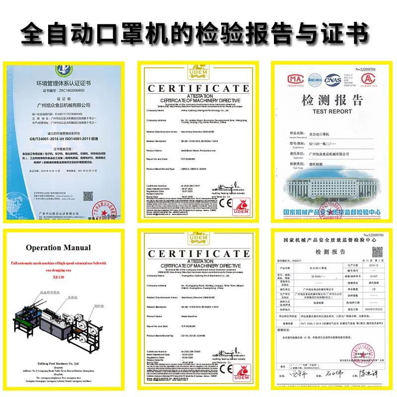 旭眾牌一拖二口罩機(jī)由一臺(tái)本體機(jī)帶動(dòng)兩臺(tái)耳帶機(jī)組成。本體機(jī)輸出ロ罩本體后,由輸送帶結(jié)構(gòu)將口罩本體片輸送到連接耳帶機(jī)的輸送帶上,再通過輸送帶將口罩片輸送到耳帶機(jī)的正面第一個(gè)口罩盤上方,最后通過氣缸下壓把口罩片放置到耳帶機(jī)的口罩盤內(nèi),后續(xù)由耳帶機(jī)完成口罩的耳帶熔接,包邊等動(dòng)作,從而完成一個(gè)耳帶口罩產(chǎn)品的生產(chǎn)。本機(jī)采用PLC、觸摸屏控制、主傳送帶采用單相馬達(dá)輸送、步進(jìn)馬達(dá)翻轉(zhuǎn),傳動(dòng)精確,控制穩(wěn)定,速度可調(diào)。