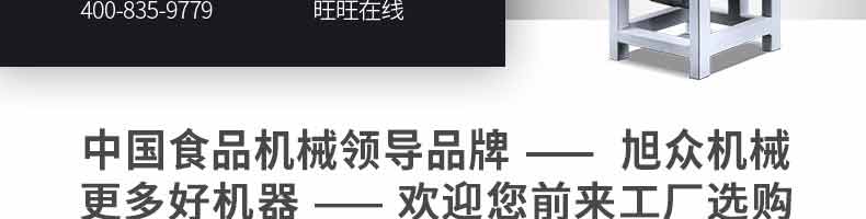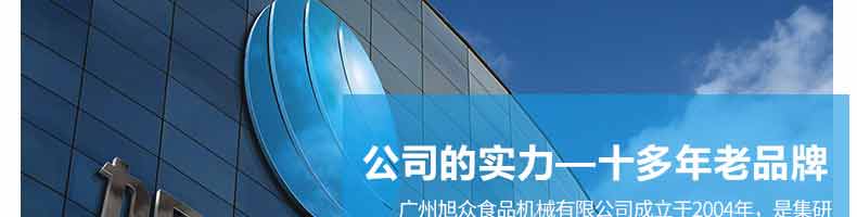 廣州旭眾食品機械有限公司是一家集科研開發(fā),生產(chǎn)設(shè)計,營銷服務(wù)為一體的現(xiàn)代化生產(chǎn)企業(yè)?,F(xiàn)代化生產(chǎn)車間,精湛制造技術(shù),所產(chǎn)機械歷經(jīng)市場重重考驗,不斷贏得海內(nèi)外客戶的贊譽。