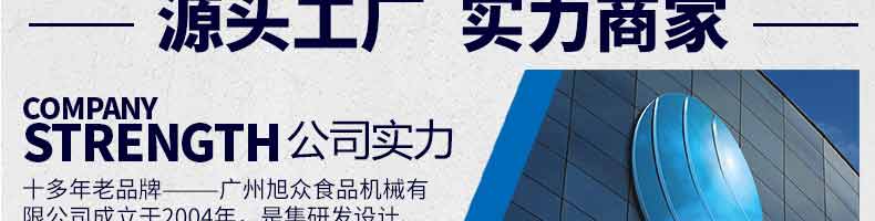 廣州旭眾食品機(jī)械有限公司是一家集科研開發(fā),生產(chǎn)設(shè)計,營銷服務(wù)為一體的現(xiàn)代化生產(chǎn)企業(yè)?,F(xiàn)代化生產(chǎn)車間,精湛制造技術(shù),所產(chǎn)機(jī)械歷經(jīng)市場重重考驗,不斷贏得海內(nèi)外客戶的贊譽(yù)。