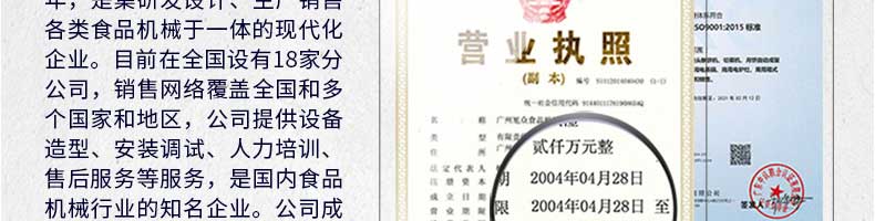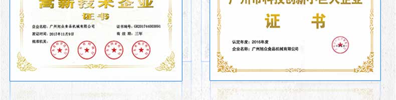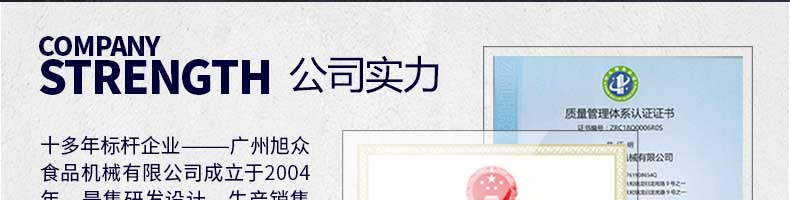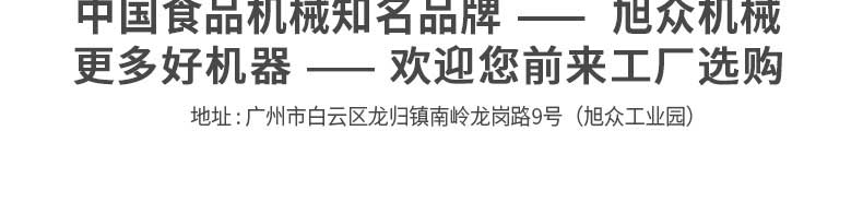 廣州旭眾食品機(jī)械有限公司是一家集科研開發(fā),生產(chǎn)設(shè)計(jì),營(yíng)銷服務(wù)為一體的現(xiàn)代化生產(chǎn)企業(yè)。現(xiàn)代化生產(chǎn)車間,精湛制造技術(shù),所產(chǎn)機(jī)械歷經(jīng)市場(chǎng)重重考驗(yàn),不斷贏得海內(nèi)外客戶的贊譽(yù)。